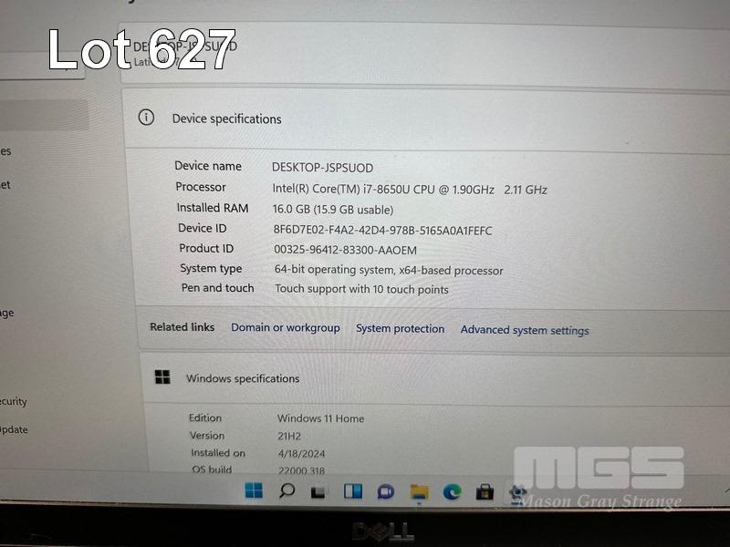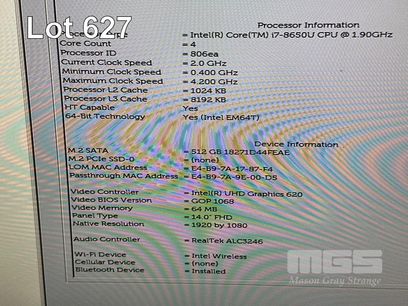 LAPTOP, DELL LATITUDE 7490, CORE i7 8650U (8TH GEN) @ 1.9GHz, 16GB DDR4 RAM, 512GB NVMe M.2 SSD, 14" TOUCHSCREEN (1920x1080), INTEL UHD GRAPHICS 620, Wi-Fi, BLUETOOTH, WINDOWS 11 HOME INSTALLED & POWER SUPPLY (NOTE: SWOLLEN BATTERY, BATTERY NOT HOLDING CHARGE, MARKS ON SCREEN) S/N:38MMRQ2