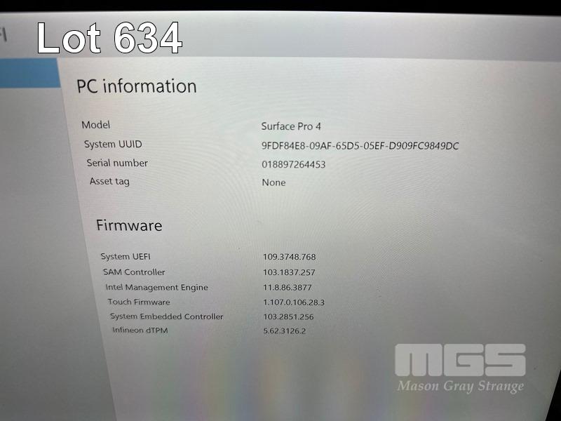 TABLET PC, MICROSOFT SURFACE PRO 4, MODEL 1724, CORE i5 6300U (6TH GEN) @ 2.4GHz, 4GB RAM, 128GB SSD, 12.3" TOUCHSCREEN (2736x1824), INTEL HD GRAPHICS 520, Wi-Fi, BLUETOOTH, WINDOWS 10 PRO INSTALLED, KEYBOARD TYPE COVER & POWER SUPPLY S/N:018897264453