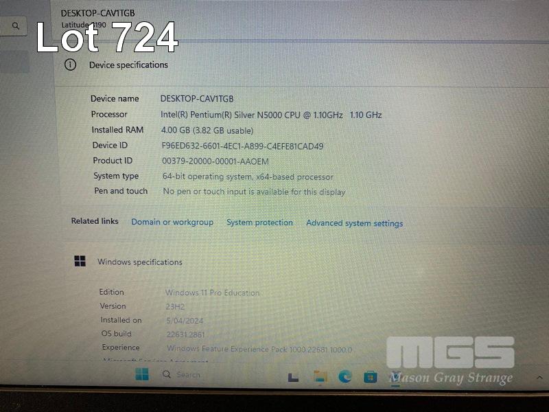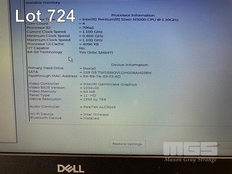 LAPTOP, DELL LATITUDE 3190, PENTIUM SILVER N5000 @ 1.1GHz, 4GB DDR4 RAM, 128GB M.2 SSD, 11.6" WIDESCREEN (1366x768), INTEL UHD GRAPHICS 605, Wi-Fi, BLUETOOTH, WINDOWS 11 PRO EDUCATION INSTALLED & POWER SUPPLY (NOTE: BRIGHT SPOT ON SCREEN) S/N:7FF66S2