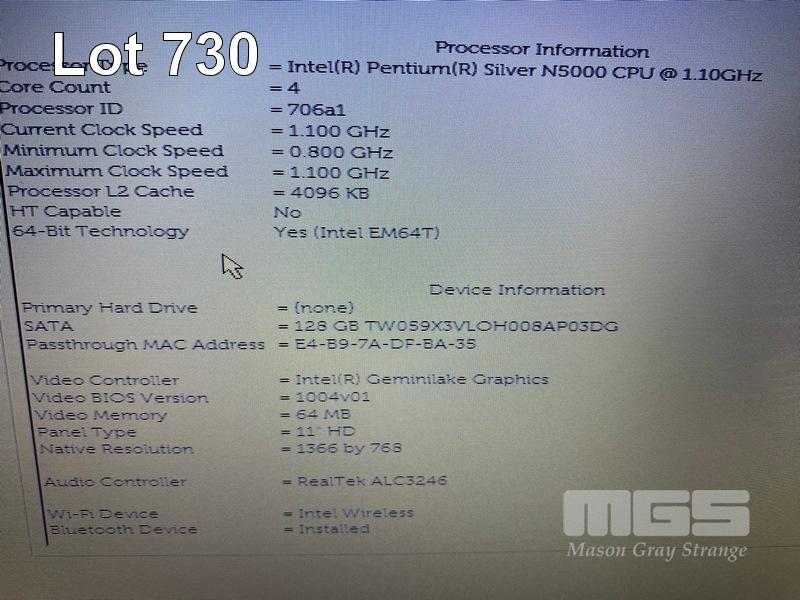 LAPTOP, DELL LATITUDE 3190, PENTIUM SILVER N5000 @ 1.1GHz, 4GB DDR4 RAM, 128GB M.2 SSD, 11.6" WIDESCREEN (1366x768), INTEL UHD GRAPHICS 605, Wi-Fi, BLUETOOTH, WINDOWS 11 PRO EDUCATION INSTALLED & POWER SUPPLY S/N:7WF76S2