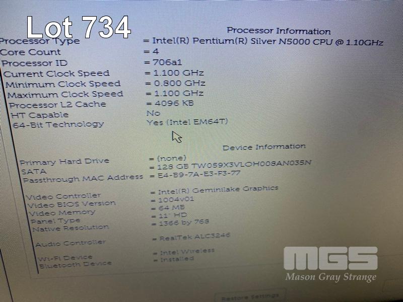 LAPTOP, DELL LATITUDE 3190, PENTIUM SILVER N5000 @ 1.1GHz, 4GB DDR4 RAM, 128GB M.2 SSD, 11.6" WIDESCREEN (1366x768), INTEL UHD GRAPHICS 605, Wi-Fi, BLUETOOTH, WINDOWS 11 PRO EDUCATION INSTALLED & POWER SUPPLY S/N:CY466S2