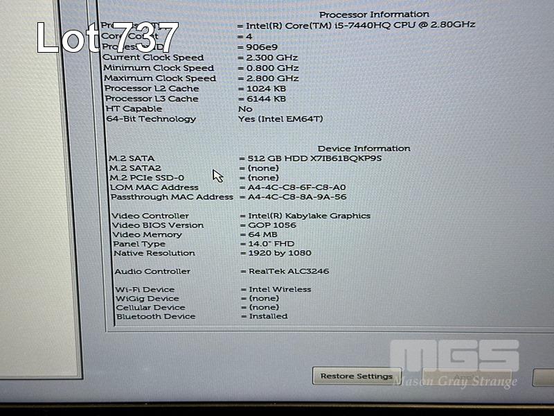 LAPTOP, DELL LATITUDE 5480, CORE i5 7440HQ (7TH GEN) @ 2.8GHz, 8GB DDR4 RAM, 512GB M.2 SSD, 14" WIDESCREEN (1920x1080), INTEL HD GRAPHICS 630, Wi-Fi, BLUETOOTH, WINDOWS 10 HOME INSTALLED & POWER SUPPLY S/N:FCMD3M2