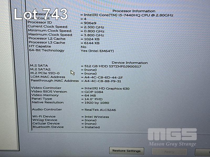 LAPTOP, DELL LATITUDE 5480, CORE i5 7440HQ (7TH GEN) @ 2.8GHz, 16GB DDR4 RAM, 512GB M.2 SSD, 14" WIDESCREEN (1920x1080), INTEL HD GRAPHICS 630, Wi-Fi, BLUETOOTH, WINDOWS 10 HOME INSTALLED & POWER SUPPLY S/N:GWWZPH2