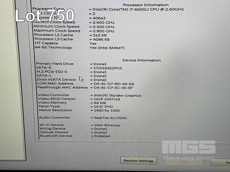LAPTOP, DELL LATITUDE E5570, CORE i7 6600U (6TH GEN) @ 2.6GHz, 16GB DDR3 RAM, 512GB M.2 SSD, 15.6" WIDESCREEN (1920x1080), INTEL SKYLAKE GRAPHICS, Wi-Fi, BLUETOOTH, WINDOWS 10 HOME INSTALLED, DOCKING STATION & POWER SUPPLY S/N:G95M2G2