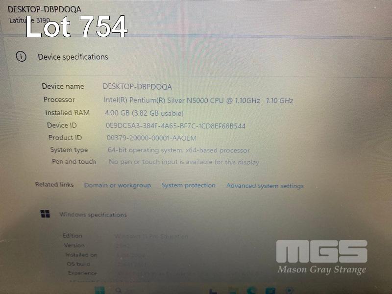 LAPTOP, DELL LATITUDE 3190, PENTIUM SILVER N5000 @ 1.1GHz, 4GB DDR4 RAM, 128GB M.2 SSD, 11.6" WIDESCREEN (1366x768), INTEL UHD GRAPHICS 605, Wi-Fi, BLUETOOTH, WINDOWS 11 PRO EDUCATION INSTALLED & POWER SUPPLY (NOTE:MISSING LEFT SCREEN HINGE COVER) S/N:DRR66S2