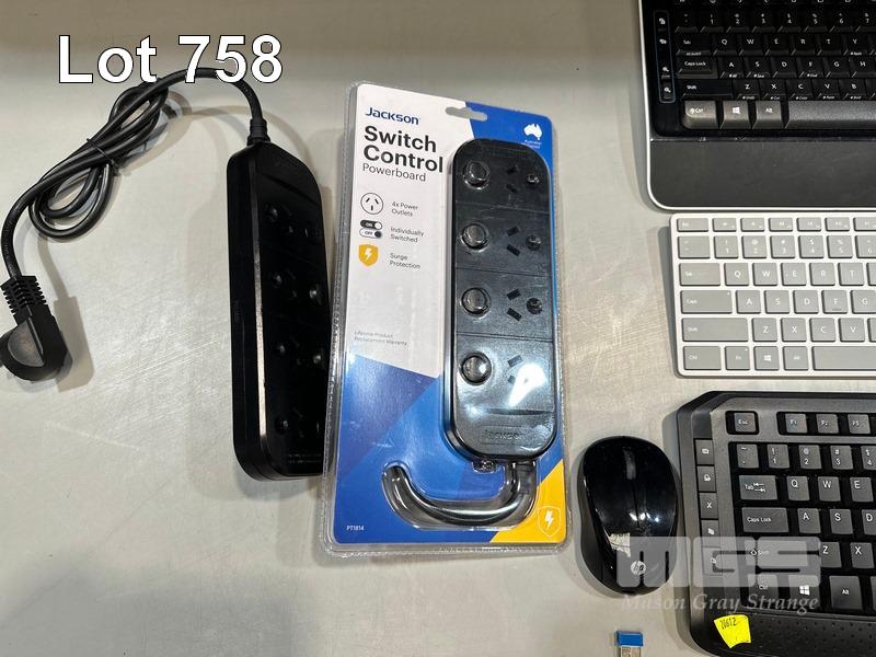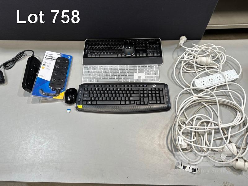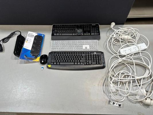 POWER BOARDS, EXTENSION LEADS, HP WIRELESS KEYBOARD & MOUSE, MICROSOFT KEYBOARDS (NO RECEIVERS)