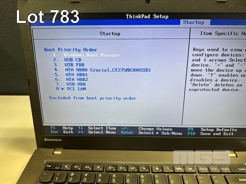 LAPTOP, LENOVO THINKPAD T440, TYPE 20B7, CORE i5 4300U (4TH GEN) @ 1.9GHz, 4GB DDR3 RAM, 275GB SSD, 14" WIDESCREEN (1366x768), INTEL HD VIDEO, Wi-Fi, BLUETOOTH, WINDOWS 10 PRO INSTALLED & POWER SUPPLY (NOTE: BRIGHT SPOTS ON SCREEN) S/N:PB03C81B