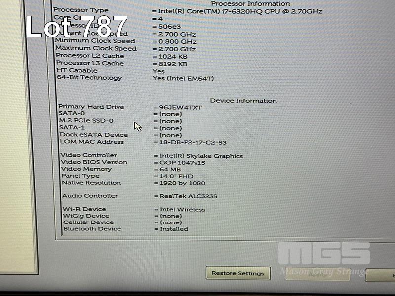 LAPTOP, DELL LATITUDE E5470, CORE i7 6820HQ (6TH GEN) @ 2.7GHz, 16GB DDR4 RAM, 1TB M.2 SSD, 14" WIDESCREEN (1920x1080), INTEL HD GRAPHICS 520, Wi-Fi, BLUETOOTH, WINDOWS 10 HOME INSTALLED & POWER SUPPLY (NOTE: NO BATTERY, MARKS ON SCREEN) S/N:91CSQC2