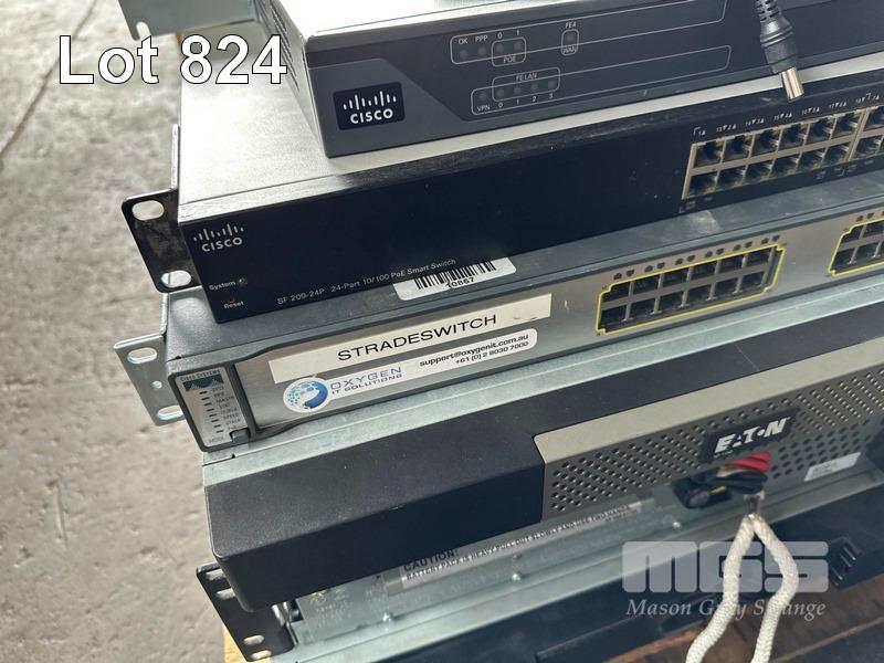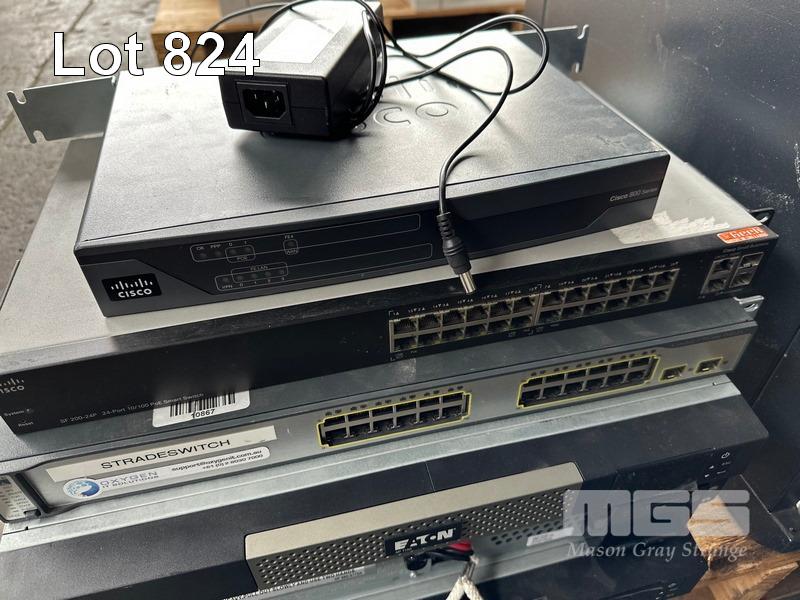 DATA RACK FRAME & NETWORKING INC. - NETGEAR 16-PORT SWITCH - HIKVISION NETWORK VIDEO RECORDER, DS-WSELI-T4/16P - CISCO ME 3400E SERIES SWITCH - CISCO 800 SERIES ROUTER - CISCO SF 200-24P 24-PORT SWITCH - EATON 5P UPS ETC.