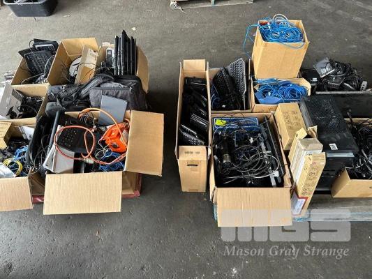 2 x PALLET LOTS ASST CABLES, KEYBOARDS, HEADPHONES, GRAPHICS CARDS, CAT5 NETWORK CABLES, LAPTOP BAGS, ETC