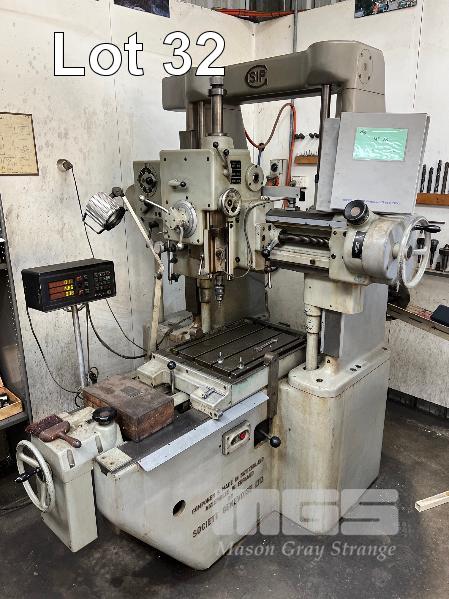 SOCIETE GENEVOISE BRIDGE MILL, MODEL: MP-3K, SERIAL: 8603, WITH DRO, 415V, ASSORTED BORING & MILLING HEADS, DRILL CHUCK & MANUALS NOTE: VERY GOOD CONDITION