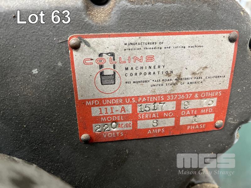 COLLINS PIPE THREADER, 240V, SINGLE PHASE, MODEL: 111A, UPTO 2", 2 HEADS, PIPE CUTTING ATTACHMENT, ON FOLD AWAY STAND