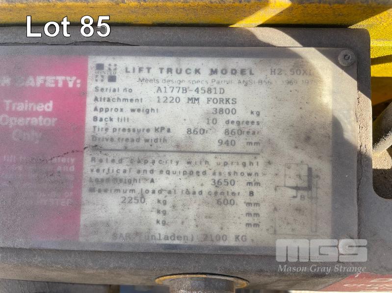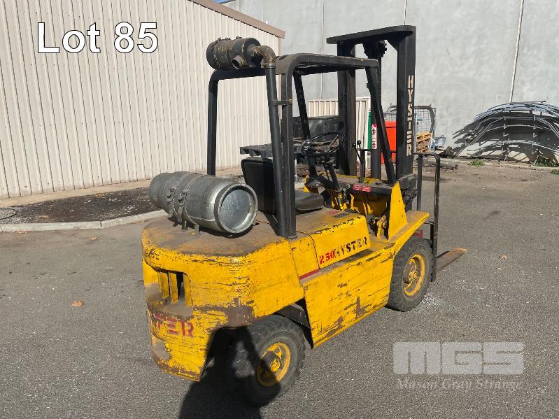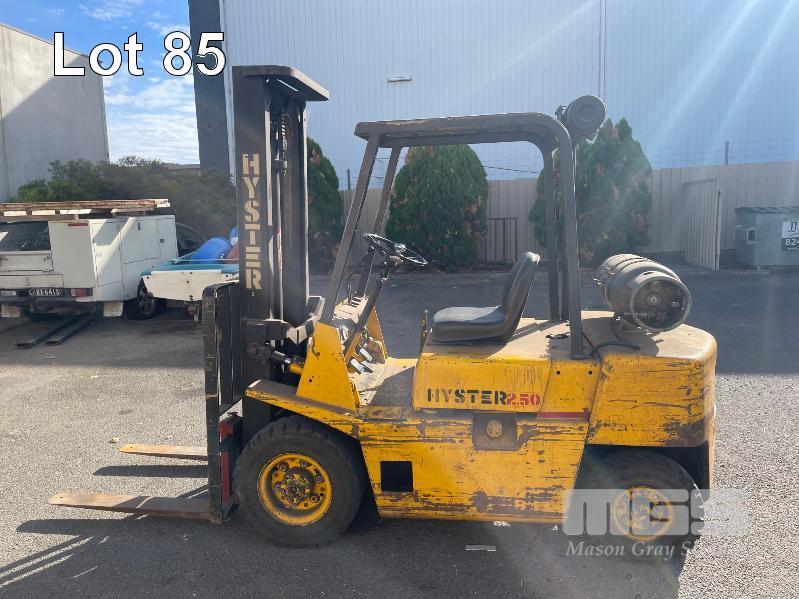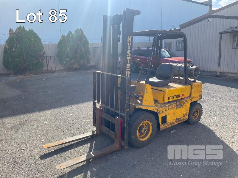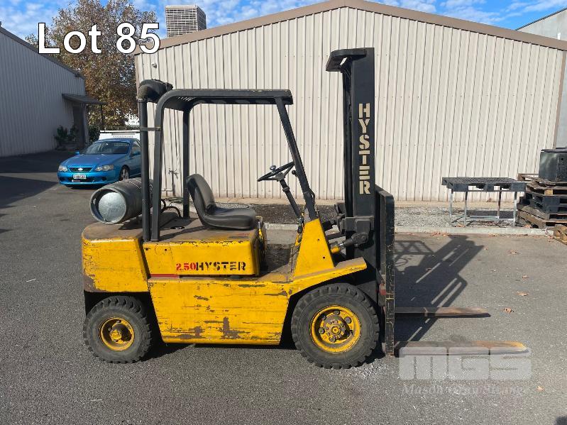 HYSTER 2.50XL FORKLIFT CAPACITY: 2250kg DOM:1983 HOURS: 6262 PNEUMATIC TYRES MAX LIFT HEIGHT 3650mm (GAS BOTTLE NOT INCLUDED)