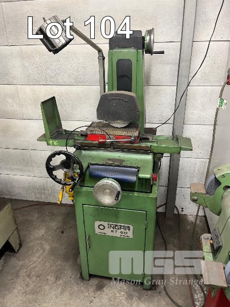 INGAR SURFACE GRINDER 'SPAIN' MODEL: RT6-12, 415V WITH 300 x 150mm SELTER, MAGNETIC CHUCK, HAND PUMP OILER, ASSORTED SPARE STONES, ON CABINET, HALOGEN LIGHT