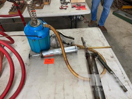 2kg GREASE PUMP, HOSE, GUN, MACNAUGHT GREASE GUN & OIL DRAIN PUMP