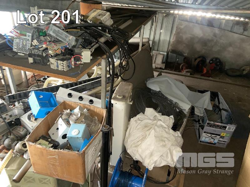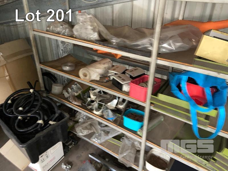 AIR RAMS, AIR FITTINGS, HOSE CLAMPS, CONDUITS, ELECTRICAL COMPONENTS CONTENTS 5 x SHELVES, UPSTAIRS LEFT HAND SIDE
