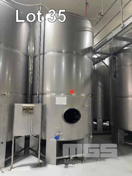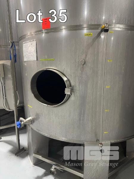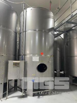 STAINLESS STEEL UPRIGHT TANK, 15,000 LITRE CONE BOTTOM ON LEGS LEVEL GAUGE TO 5,000 LITRE BOTTOM & SIDE OUTLET VALVES INCLUDES CIG REGULATOR, FITTING & LIFTING LUGS DIGITAL TEMP READOUTS & SENSORS