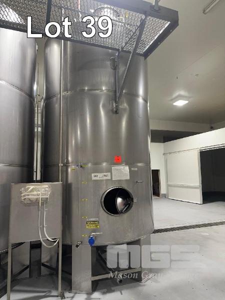 STAINLESS STEEL UPRIGHT TANK, 15,000 LITRE CONE BOTTOM ON LEGS LEVEL GAUGE TO 5,000 LITRE BOTTOM & SIDE OUTLET VALVES INCLUDES CIG REGULATOR, FITTING & LIFTING LUGS