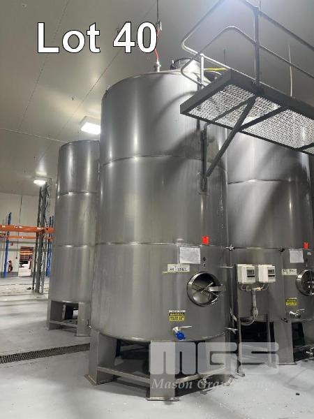 STAINLESS STEEL UPRIGHT TANK, 15,000 LITRE CONE BOTTOM ON LEGS LEVEL GAUGE TO 5,000 LITRE BOTTOM & SIDE OUTLET VALVES INCLUDES CIG REGULATOR, FITTING & LIFTING LUGS DIGITAL TEMP READOUTS & SENSORS