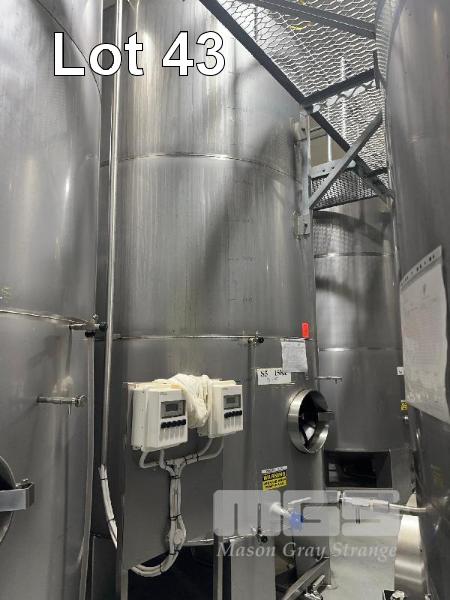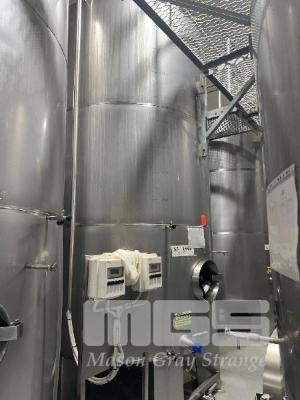 STAINLESS STEEL UPRIGHT TANK, 15,000 LITRE CONE BOTTOM ON LEGS LEVEL GAUGE TO 5,000 LITRE BOTTOM & SIDE OUTLET VALVES INCLUDES CIG REGULATOR, FITTING & LIFTING LUGS DIGITAL TEMP READOUTS & SENSORS