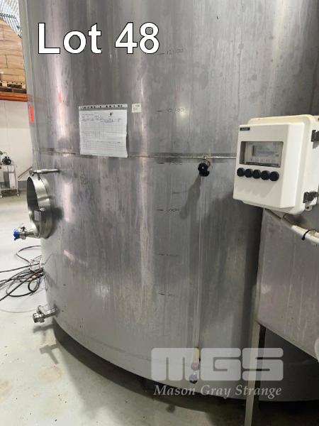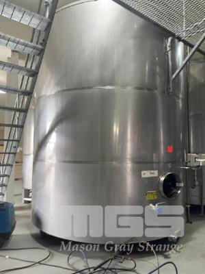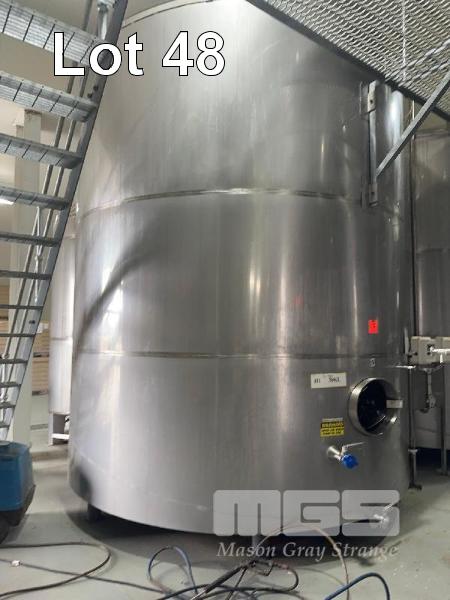 STAINLESS STEEL UPRIGHT TANK, 30,000 LITRE CONE BOTTOM ON LEGS LEVEL GAUGE TO 5,000 LITRE BOTTOM & SIDE OUTLET VALVES INCLUDES CIG REGULATOR, FITTING & LIFTING LUGS