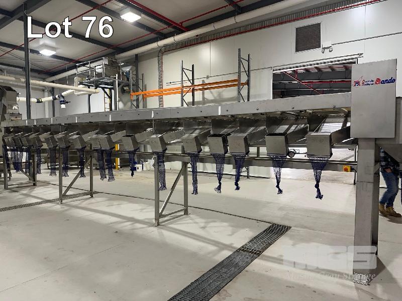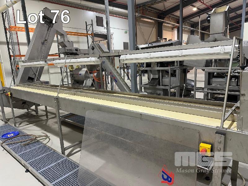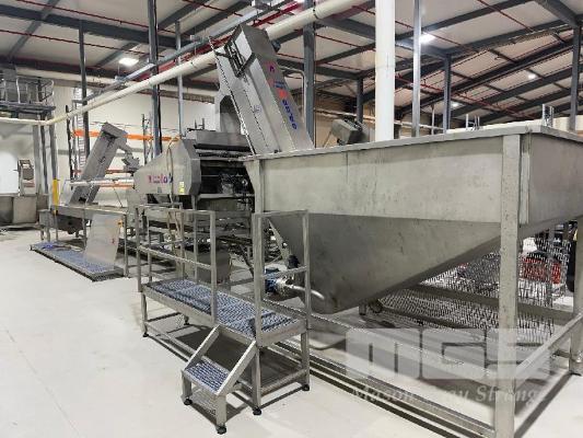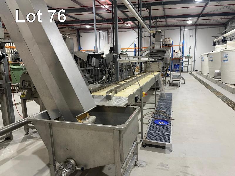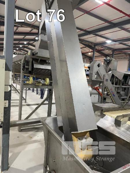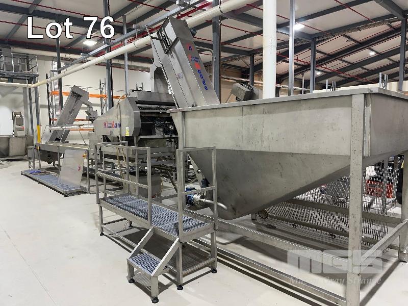 TABLE OLIVE WASH/GRINDING LINE, DESARROLLOS, TECNO BANDO TO INCLUDE STAINLESS STEEL BULK PRODUCT HOPPER WITH COMBINATION BELT ELEVATOR, ELC 200 RED (COVERED) TO DTB, DE-STEMMER MOD: DR48 TO DTB, DUAL LANE FLAT BELT INSPECTION CONVEYOR MOD: CI800BT 6000mm & OVERHEAD LIGHTING TO DTB, ELEVATED BUCKET CONVEYOR MOD: ELC500RED 300mm (W) TO DTB, GRADING LINE MOD: CL695410 STAINLESS STEEL CONSTRUCTION 18 STATION GRADING & COLLECTION, FLAT BELT CONVEYOR DELIVERY 415V SOLD WITH CONTROL CABINET 2 x INSPECTION STANDS 1 x ELEVATED HOPPER PLATFORM CIRCULATION CENTRIFUGAL PUMP - (HOPPER) FILTER CIRCULATION PUMP & TANK