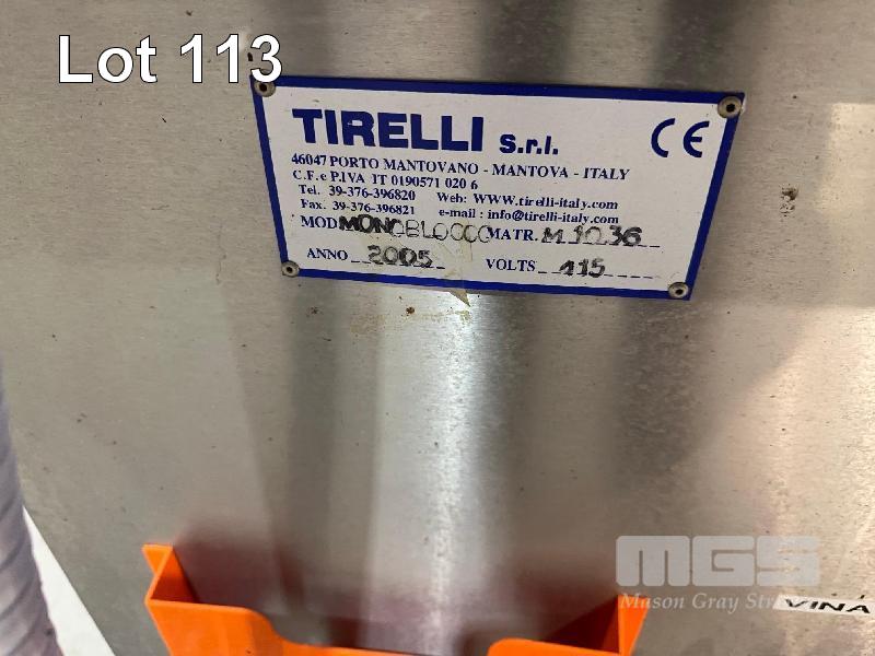 SMALL BOTTLE, BOTTLING FILLING LINE TO INCLUDE TIRELLO 3 HEAD AUTO FILLER MOD: MONOBLOC00 S/NO: M1036 DOM: 2005 WITH SARG AUTO CAPPER WITH SPARE DISPENER HEAD CONVEYORED TO TIRELLO AUTO LABELLER MOD: DELTA S/NO: M1037 DOM: 2005 BOTH WITH ALLEN BRADLEY PANELVIEW 550 CONTROLS & PVC TOP CIRCULAR DISPATCH TABLE & 2 x RACKS OF SAMLL BOTTLE TOOLING