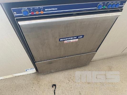 WASHTECH UD COMMERCIAL DISHWASHER, STAINLKESS STEEL CASED, BUYER TO DISCONNECT. 240V