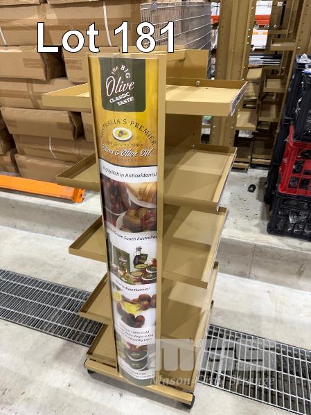 24 x 5 TIER MOBILE DISPLAY SHELF UNITS, NEW IN BOXES! 520 x 520 x 1400mm (H) PLASTIC CASTORS WITH SIGNAGE SLOTS, BEIGE POWDER COAT 1 x PALLET