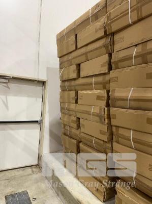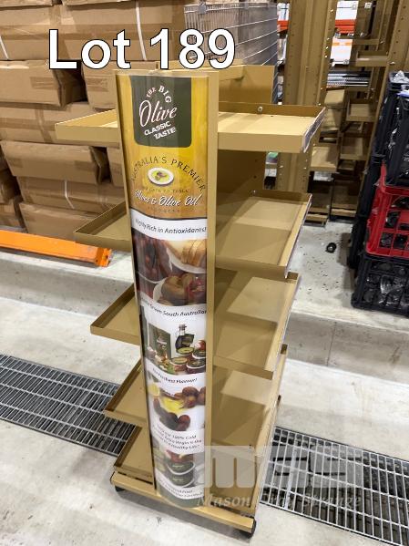 24 x 5 TIER MOBILE DISPLAY SHELF UNITS, NEW IN BOXES! 520 x 520 x 1400mm (H) PLASTIC CASTORS WITH SIGNAGE SLOTS, BEIGE POWDER COAT 1 x PALLET