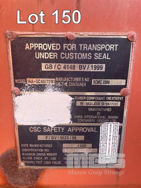 40ft SHIPPING CONTAINER, DOM: 2000, FLOOR GOOD, MINOR ROOF LEAKS, INTERNAL GPO & LIGHTING, DUCTING HOLE AT REAR