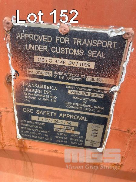40ft SHIPPING CONTAINER, DOM: 1999, FLOOR GOOD, DRY, INTERNAL LIGHTING (CONTENTS NOT INCLUDED)