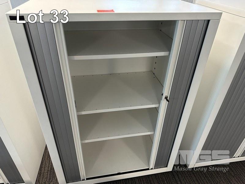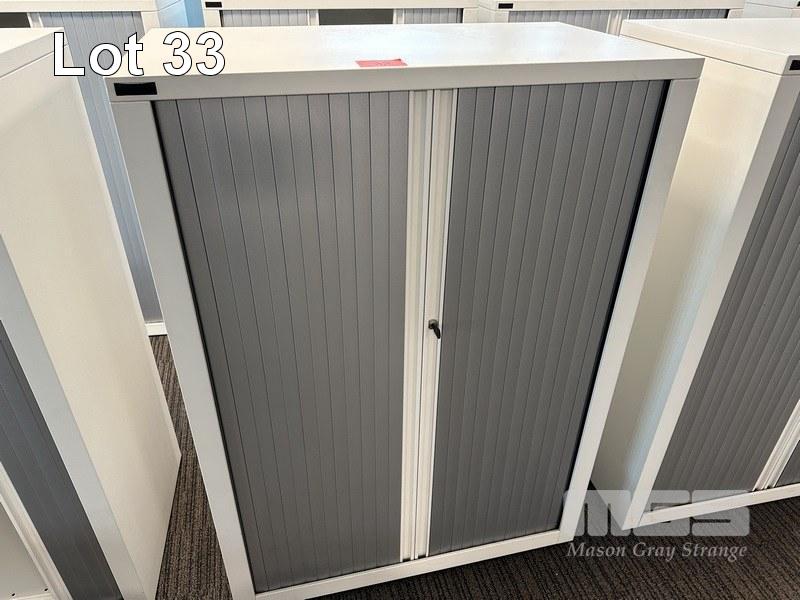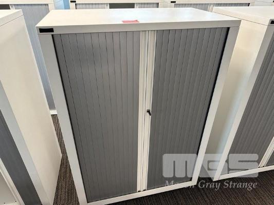 STEEL CABINET, SCHIAVELLO, TAMBOUR DOOR, WHITE, 125 x 90cm WITH KEY (LOCATED LEVEL 1)