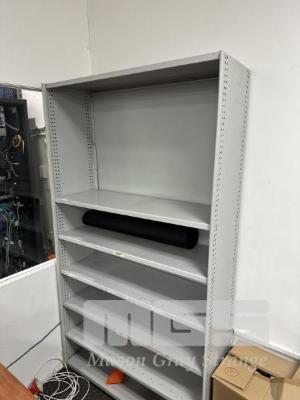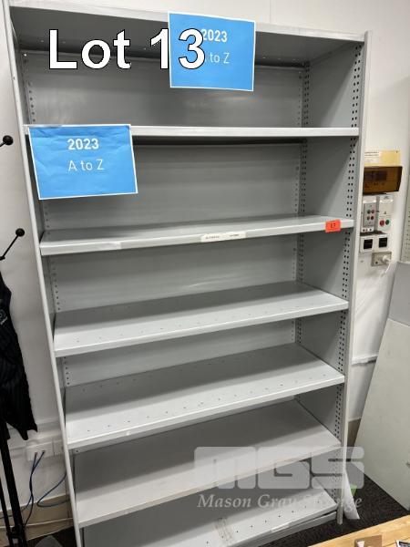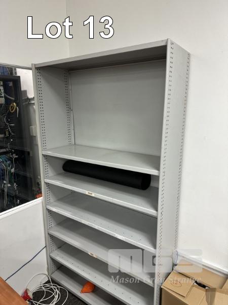 3 x STEEL SHELVING UNITS, EACH 218 x 120cm