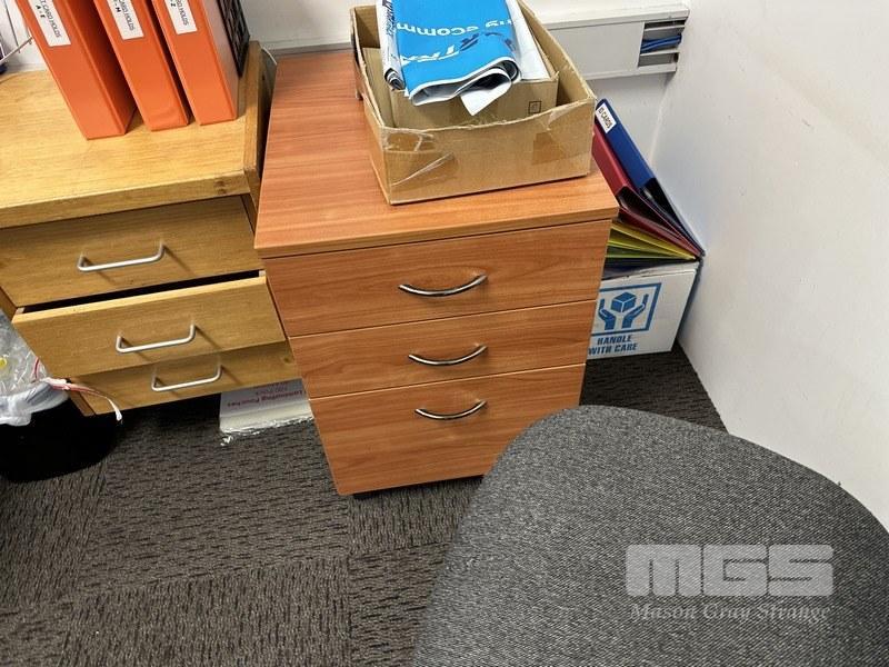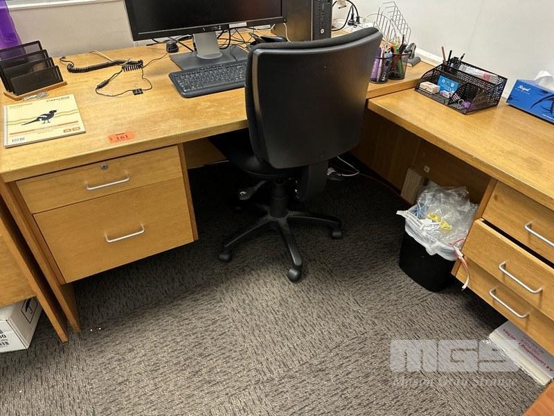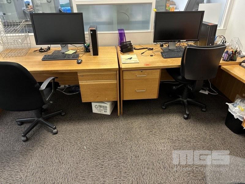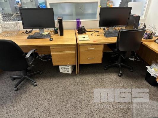 2 x OFFICE DESKS, TIMBER, EACH 170 x 90cm & 2 x CHAIRS