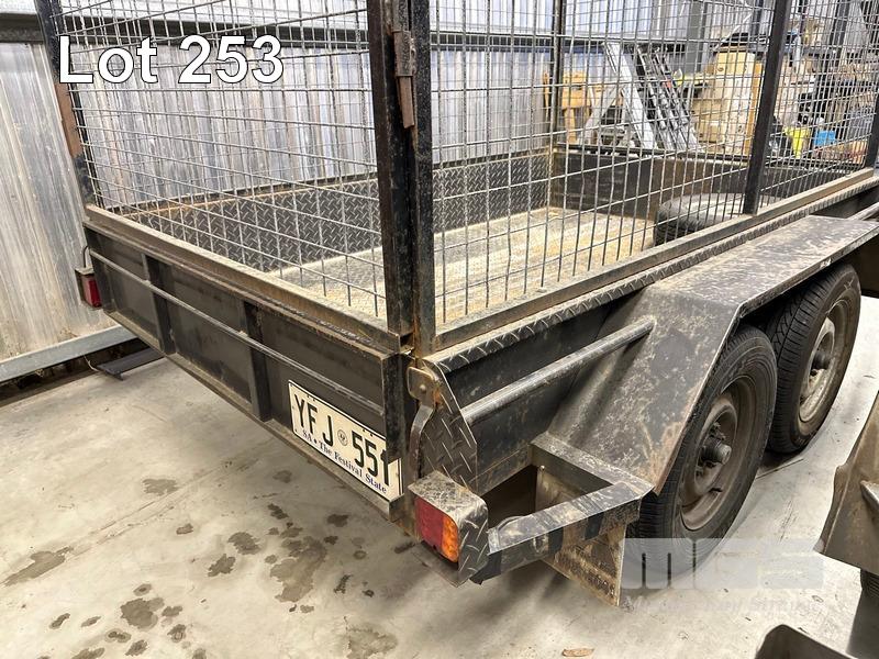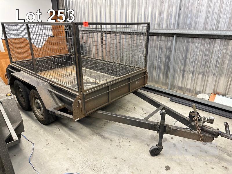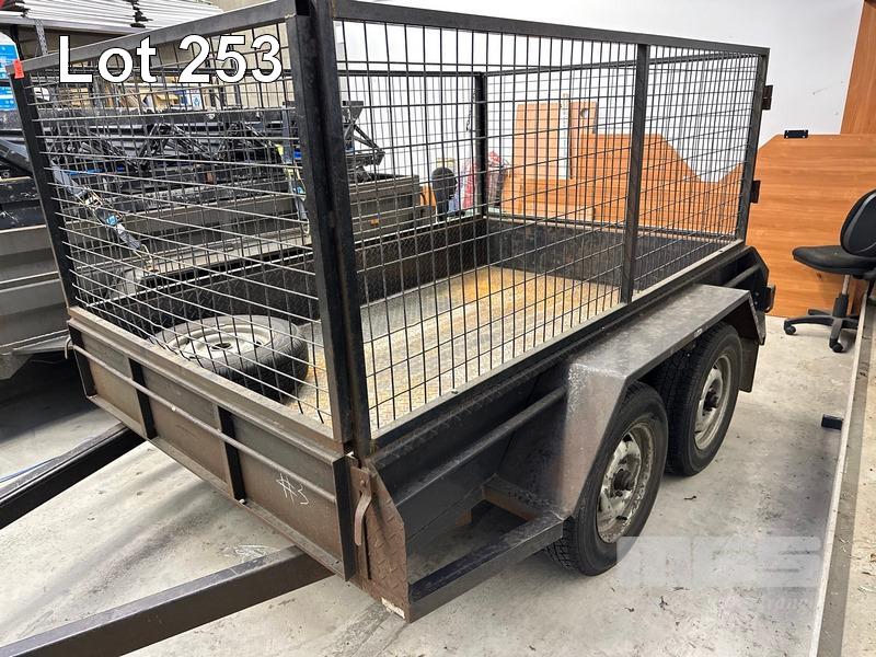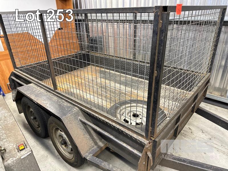 MODERN TRAILER TANDEM AXLE CAGED TRAILER, 8 x 5ft VIN: 6N4MODERN3TC09621 GTM: 1990kg DOM: 2004 REGO: YFJ551 STEEL WHEELS WITH SPARE DROP FRONT & REAR 50mm COUPLER (NO PAPERS)