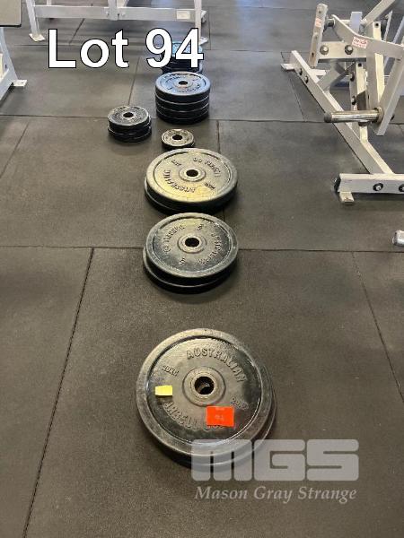 AUSTRALIAN BARBELL CO. RUBBER COATED PLATES, 2 x 1.25, 4 x 2.5, 6 x 5, 4 x 10, 2 x 15, 2 x 20, 2 x 25kgs