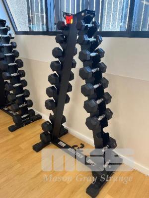 XPEED DUMBBELL TREE WITH 18 x RUBBER COATED DUMBBELLS, 1kg to 10kg