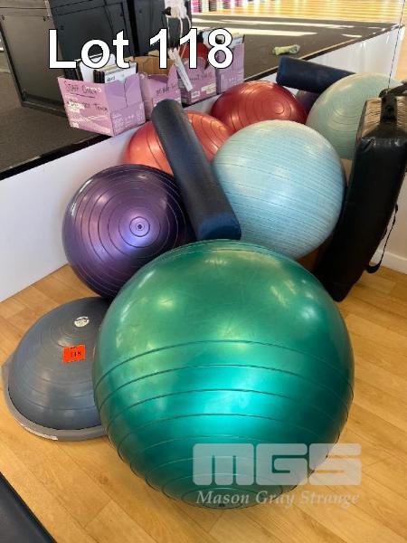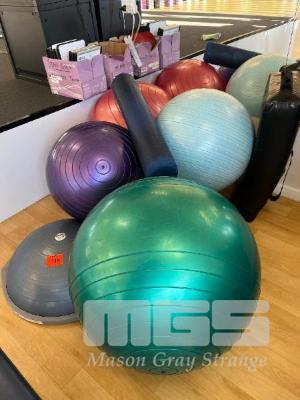 4 x GYMBALLS, 2 x BALANCE BALLS, FOAM ROLLER, KICKBOXING BAG