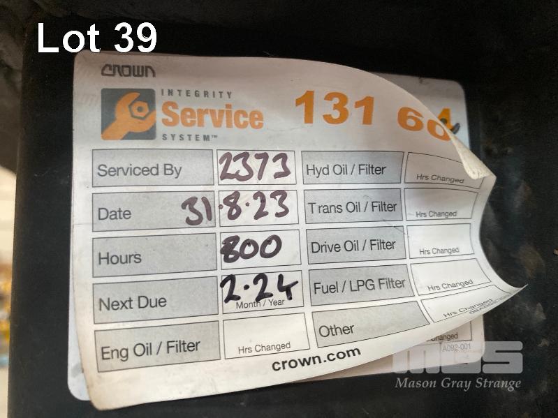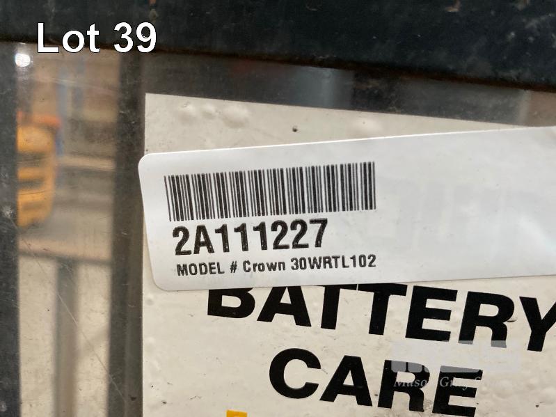 ELECTRIC WALKIE STACKER REACH FORK CROWN, MOD: 30WRTL102 S/NO: 2A111227 HOURS: 938 SHOWING LIFT CAP: 1,500kg MAX LIFT HEIGHT: 2,590kg KEYPAD LOCKOUT, CODE (1648 ENTER) WITH CHARGER & CABLE