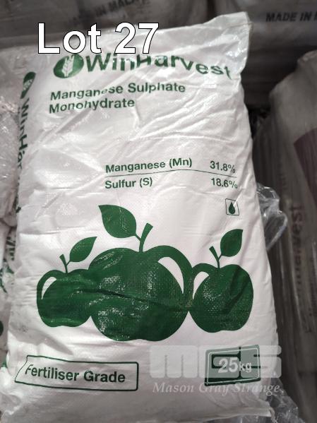 48 X BAGS WINHARVEST MANGANESE SULPHATE MONOHYDRATE (31.8% MANGANESE, 18.6% SULFUR) 25 KG (1 X PALLET)