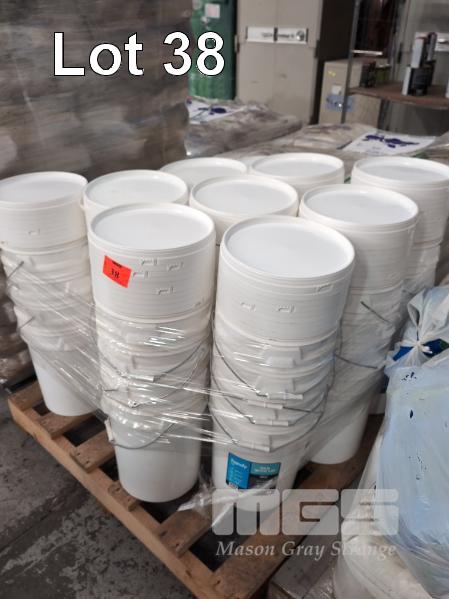 48 X NEW 20 LITRE WHITE FOOD SAFE PLASTIC PAILS WITH LIDS.