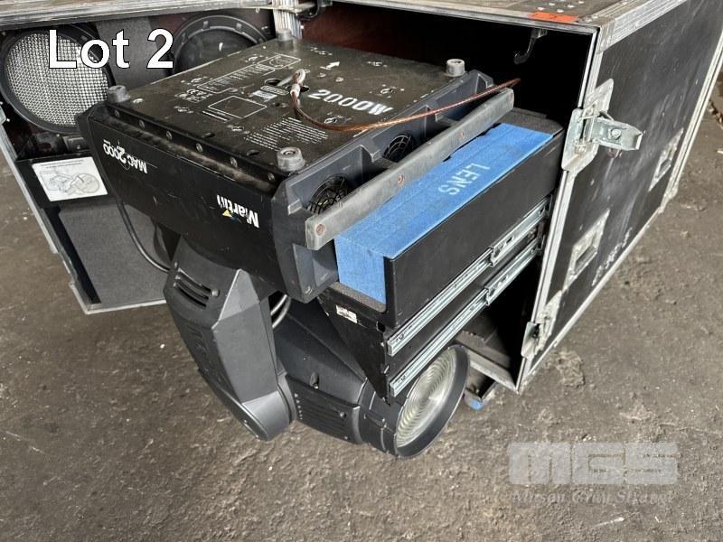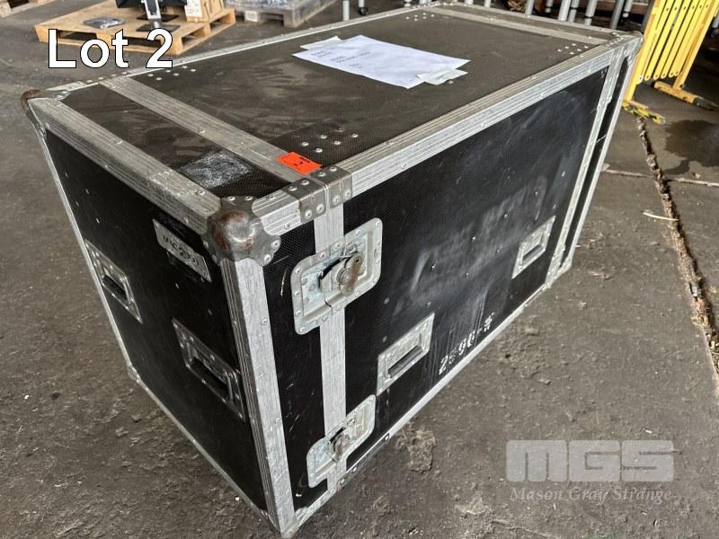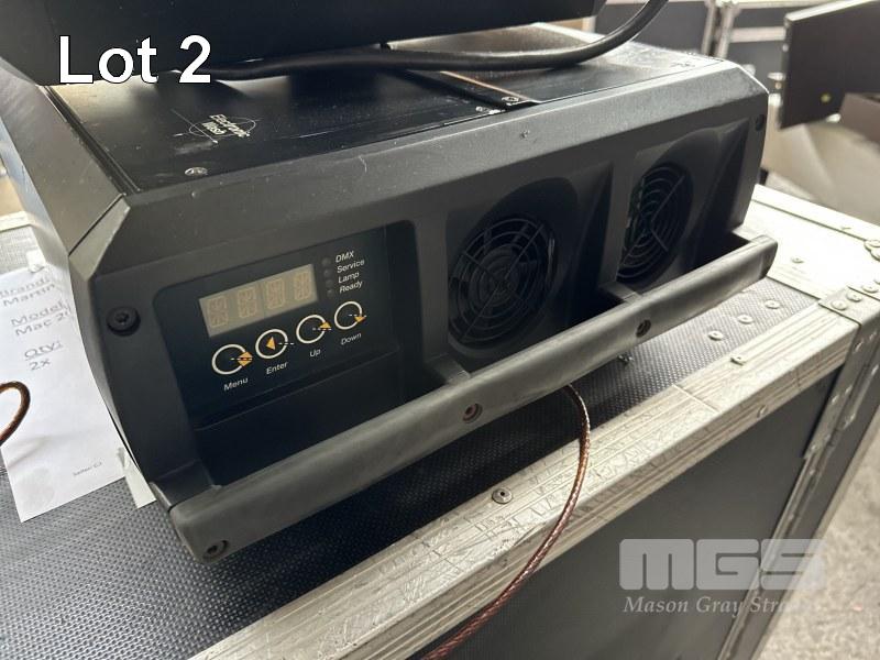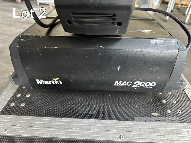 2 x MARTIN MAC 2000 WASH MOVING HEAD LIGHTS, IN MOBILE ROAD CASE, 118 x 59 x 70cm