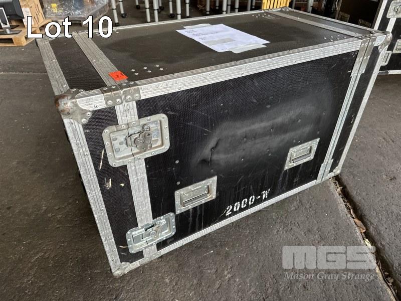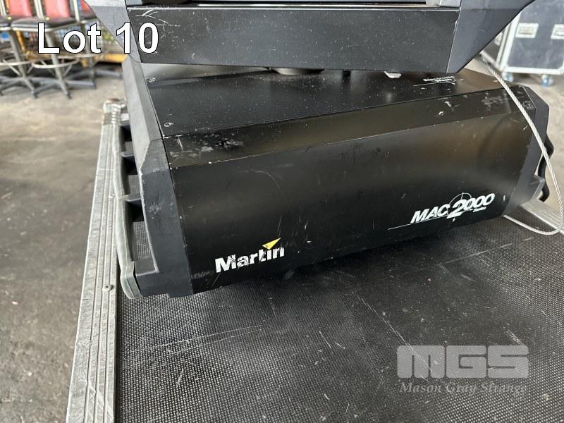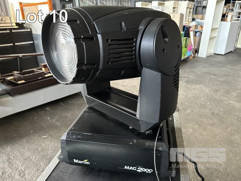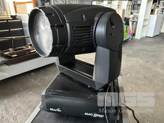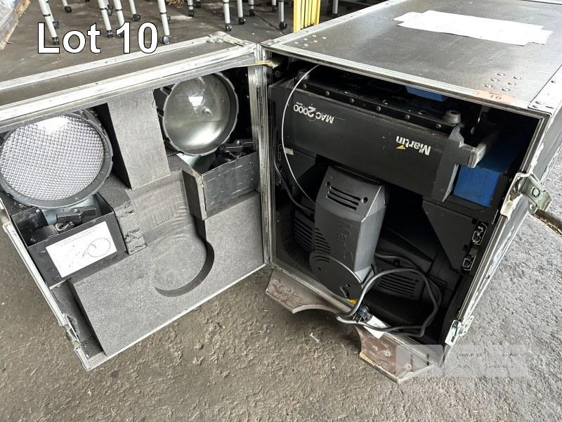 2 x MARTIN MAC 2000 WASH MOVING HEAD LIGHTS, IN MOBILE ROAD CASE, 118 x 59 x 70cm