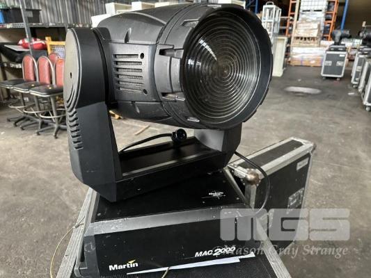 2 x MARTIN MAC 2000 WASH MOVING HEAD LIGHTS, IN MOBILE ROAD CASE, 118 x 59 x 70cm