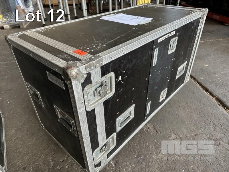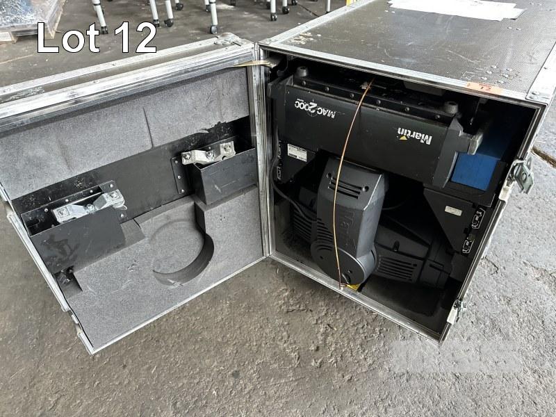 2 x MARTIN MAC 2000 WASH MOVING HEAD LIGHTS, IN MOBILE ROAD CASE, 118 x 59 x 70cm