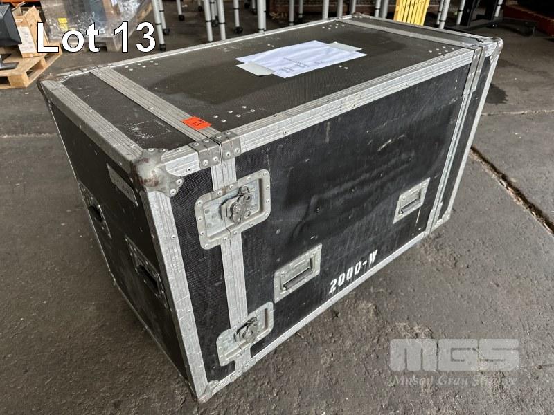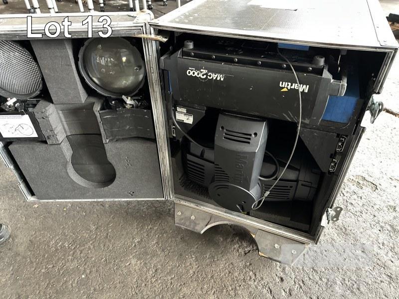 2 x MARTIN MAC 2000 WASH MOVING HEAD LIGHTS, IN MOBILE ROAD CASE, 118 x 59 x 70cm