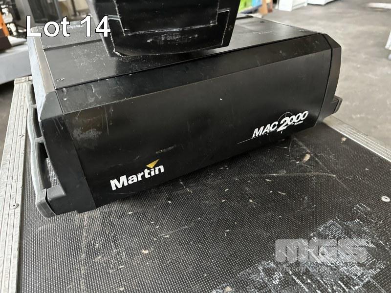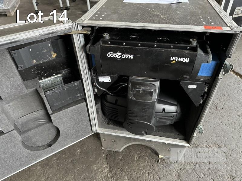 2 x MARTIN MAC 2000 PROFILE II MOVING HEAD LIGHTS, IN MOBILE ROAD CASE, 118 x 59 x 70cm