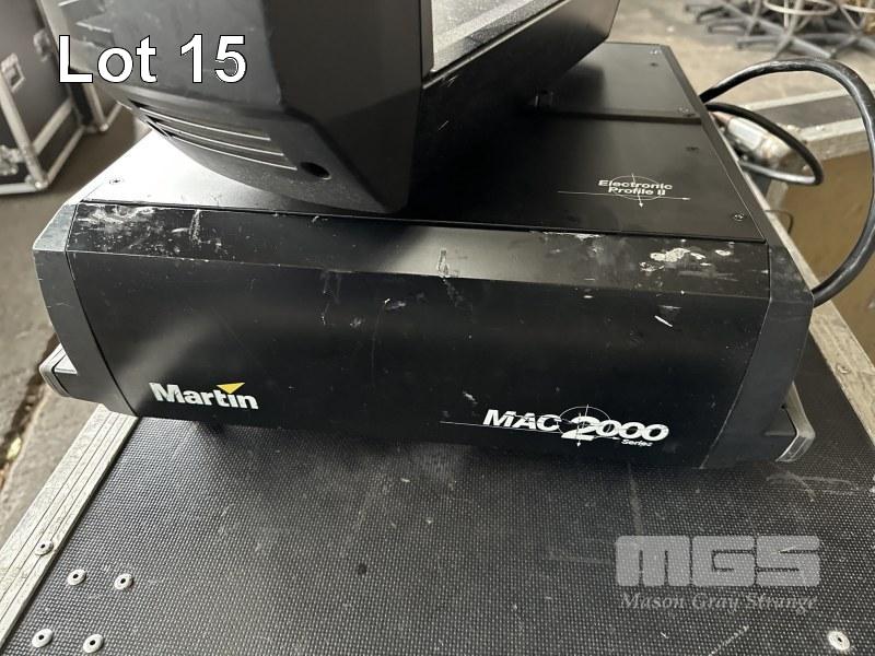 2 x MARTIN MAC 2000 PROFILE II MOVING HEAD LIGHTS, IN MOBILE ROAD CASE, 118 x 59 x 70cm