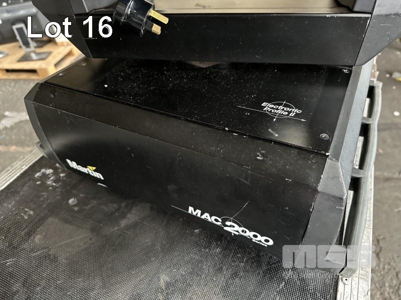 2 x MARTIN MAC 2000 PROFILE II MOVING HEAD LIGHTS, IN MOBILE ROAD CASE, 118 x 59 x 70cm